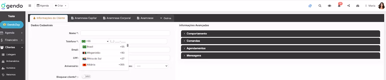 Agora você pode cadastrar clientes com números de telefone de outros países (DDI diferente do Brasil), ampliando suas possibilidades de atendimento.